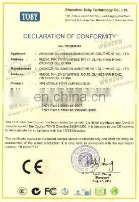 Our products include Large inflatable toys, Water products, Inflatable slides, Inflatable castles, Inflatable cartoons, Inflatable arches, Children's toys, Small bounces for family use, Water trampolines, Swimming pools, Drifting boats, Animal trains, Swing machines, and Battery cars. We have skilled workforce, special design capability and advanced technology. Now we have more than 1,300 workers and 100 technicians. Covering 50,000 square meters of modern workshop area, we are one of the biggest inflatable manufacturers in China. Our sales networks spread all over the world. Our products have been exported to the USA, South Korea, Australia, Canada, Thailand, Indonesia, Russia and others countries and regions.